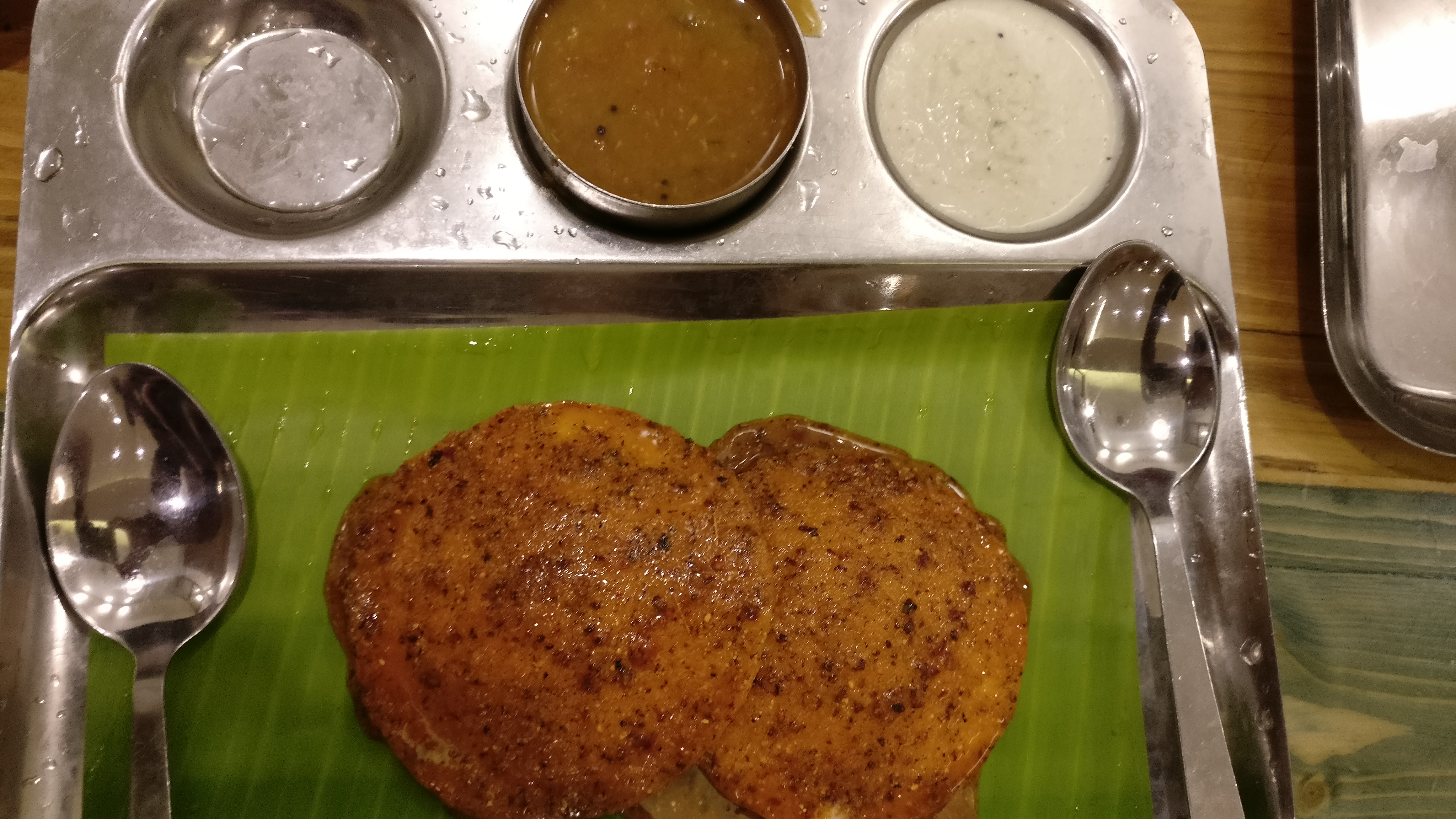 The most #Foodgasmic pic I have ever taken (as commented by one of my friends). Evey bite of the Idly had the podi. Neatly oiled and served with 3 chutneys and Sambhar. Idly and Dosai are brothers or even twins (non identical obviously). You cannot afford to hate Idly. It’s great for breakfast and dinner. It’s light and doesn’t make you feel heavy. That’s how we completed our dinner.