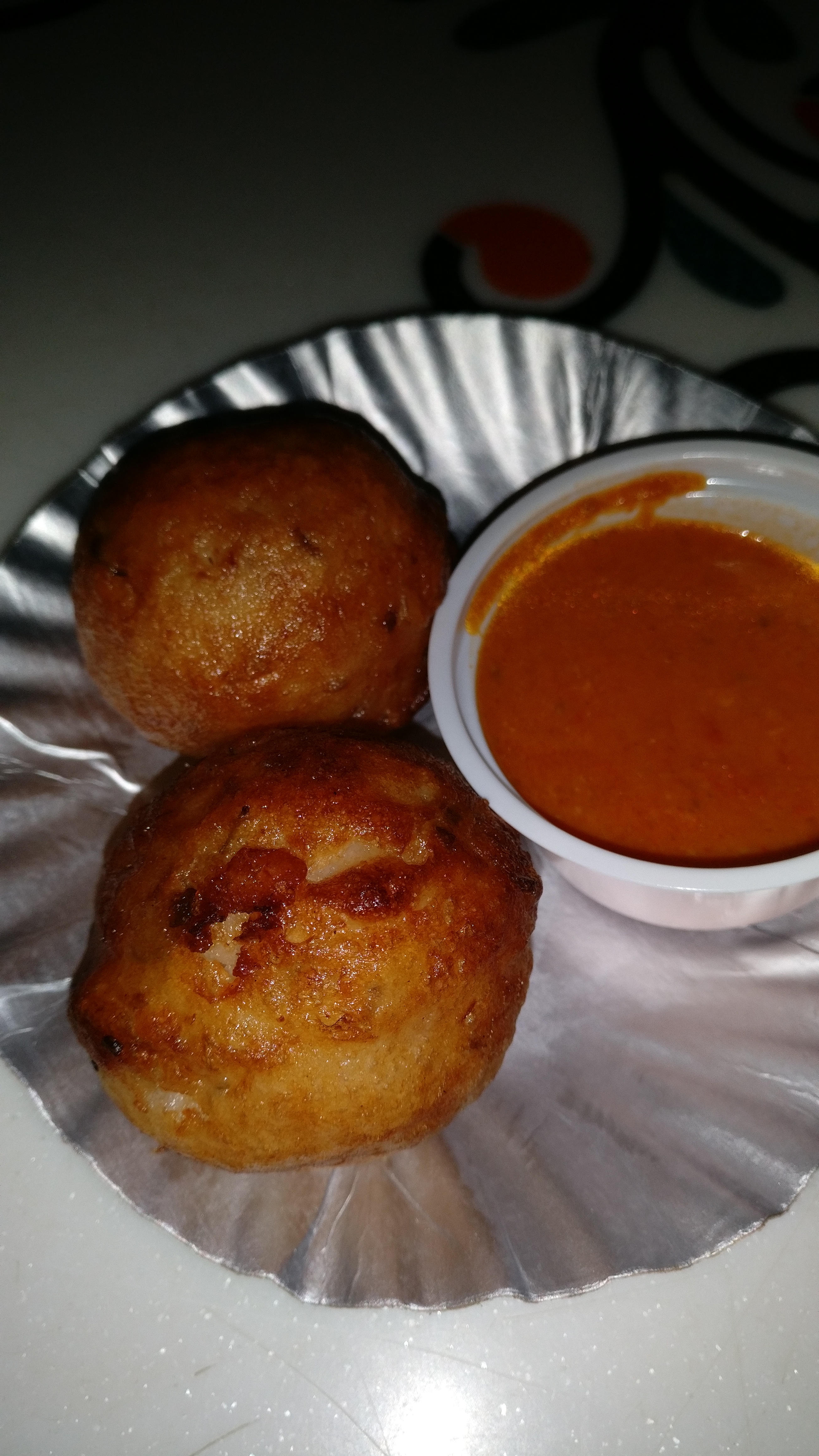 2 pieces //insert 2 pieces it’s not enough Vadivel Template// that are about the size that’s slightly larger than ping pong balls and served with Tomato Chutney. Tasted ok. Not a big fan of these. Should try somewhere else. See the pic below for reference (please mind the quality 😑)