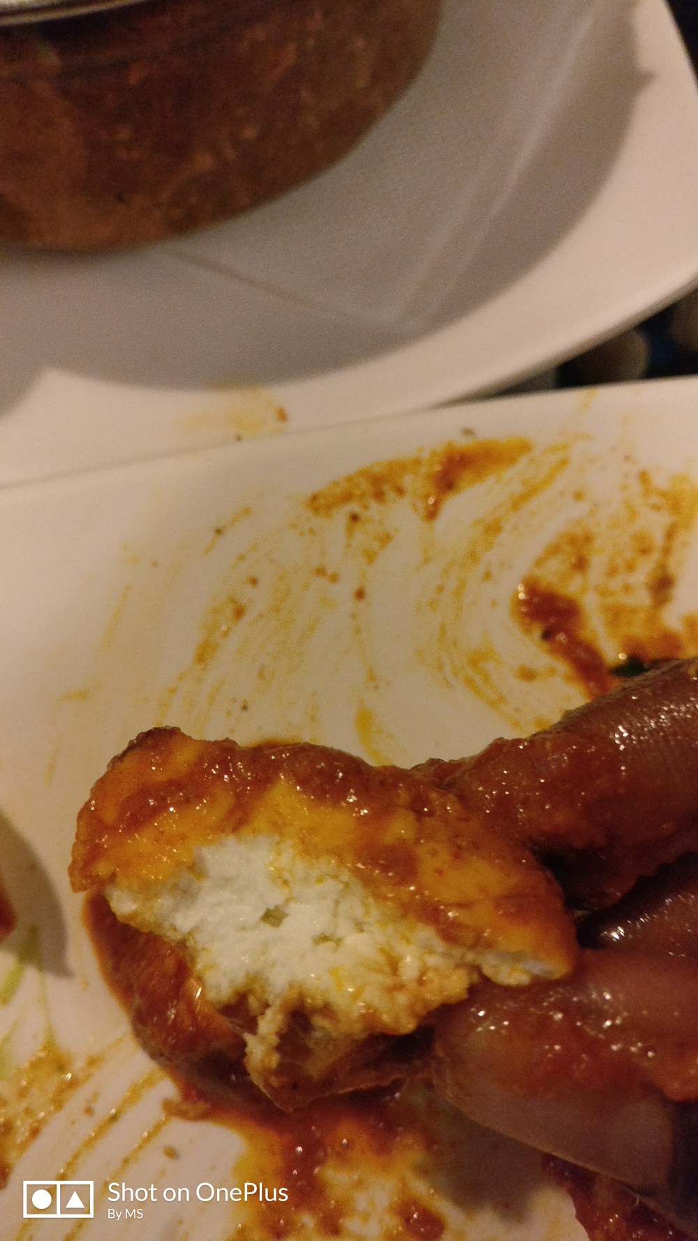 Great starter that I thought to try as we chose a Paneer dish in main course. Masala of the Vegetables and paneer (in bits though) are mixed and deeply fried. This tasted fabulous. I had more pieces than her and literally with the served green chutney it tasted bliss. Must try. Good enough for 2 people.
