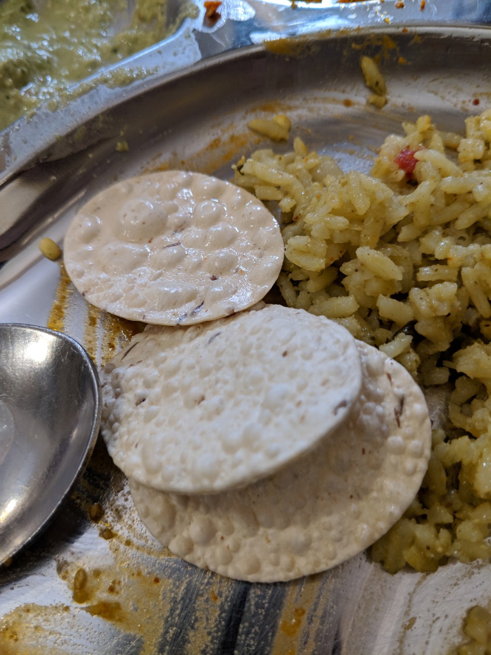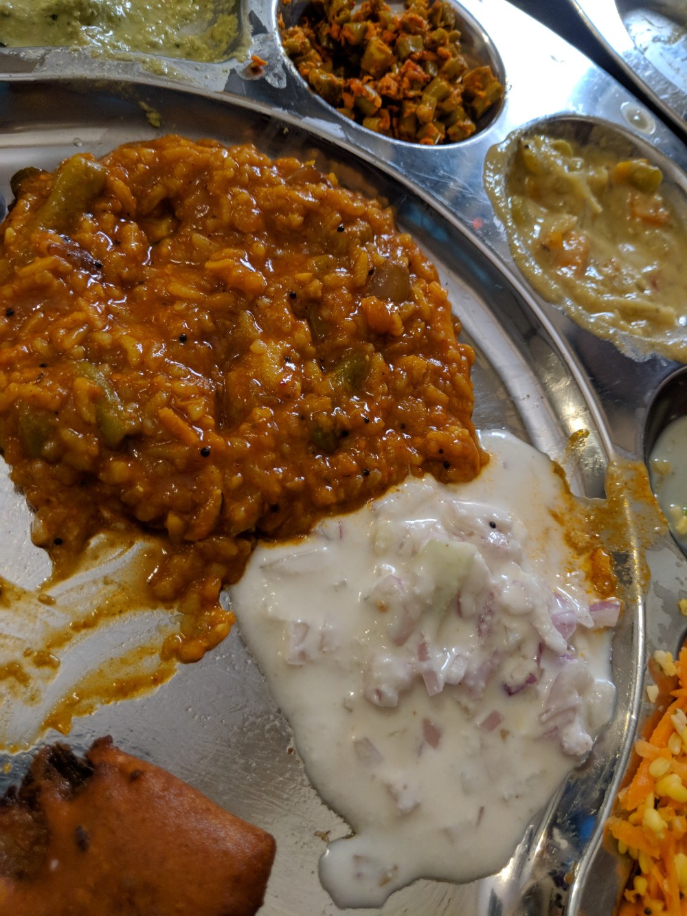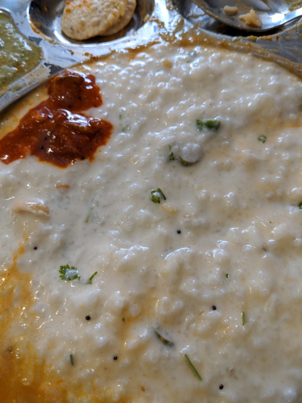 White rice that just got wet in Sambhar. This was a little different than the Sambhar you get for the dosas, tasted good though.
