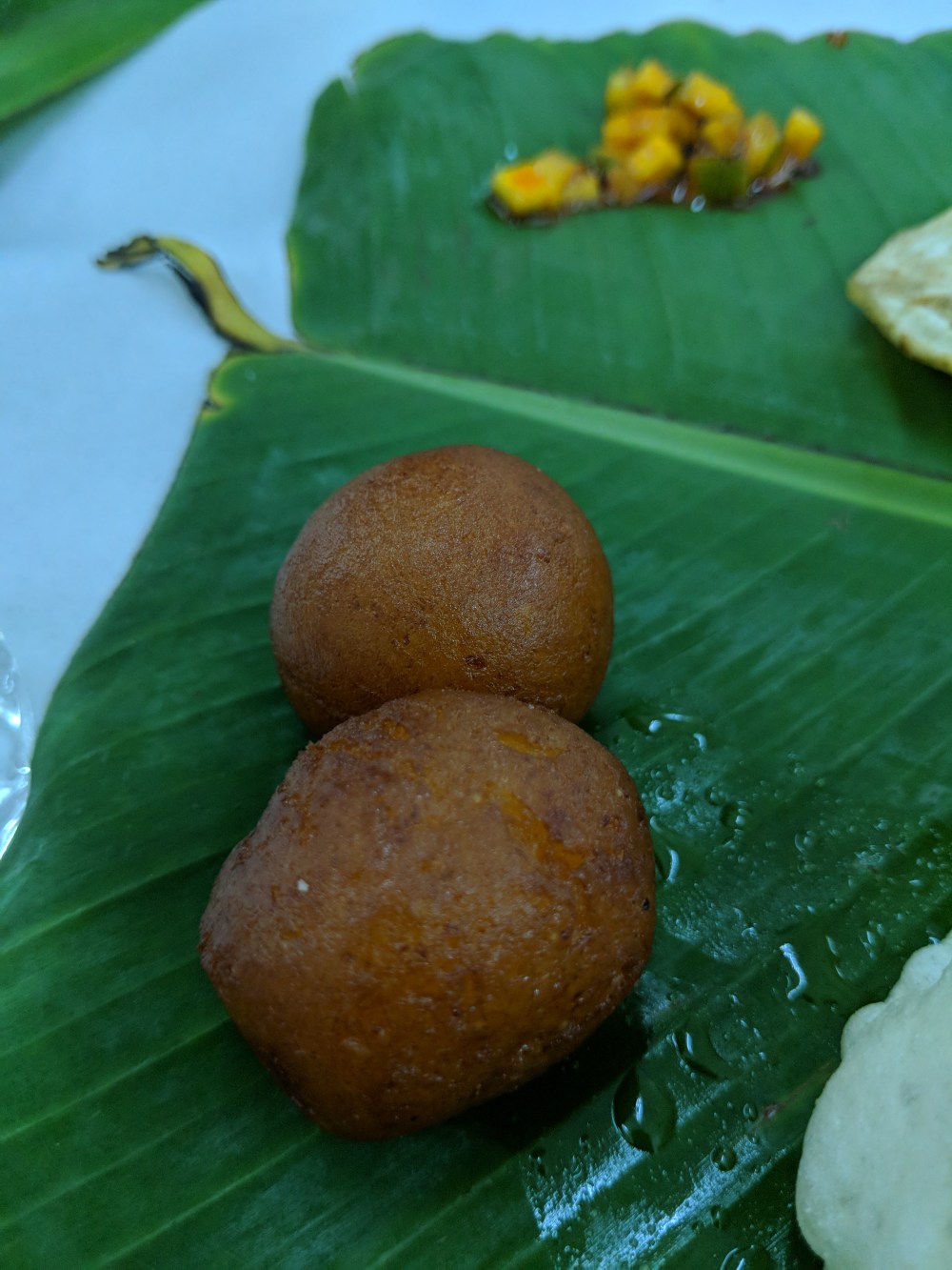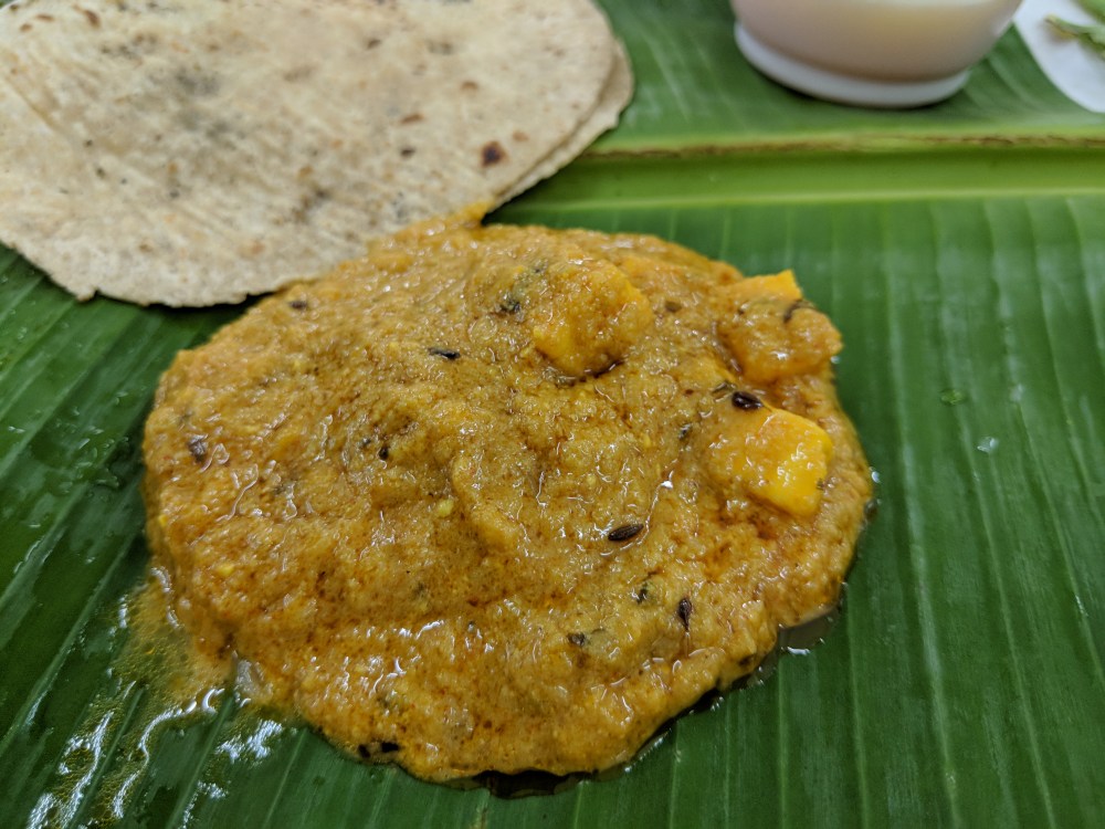 Have a close look at the Brinji and the Bissibela Bath. I forgot to take a pic of the curd rice (but I didn’t have it though). Also find the bus bus appalam and chips waiting to go to my stomach through the food pipe. Ended my dinner with Basundhi and took the thaambula pai and came home.
