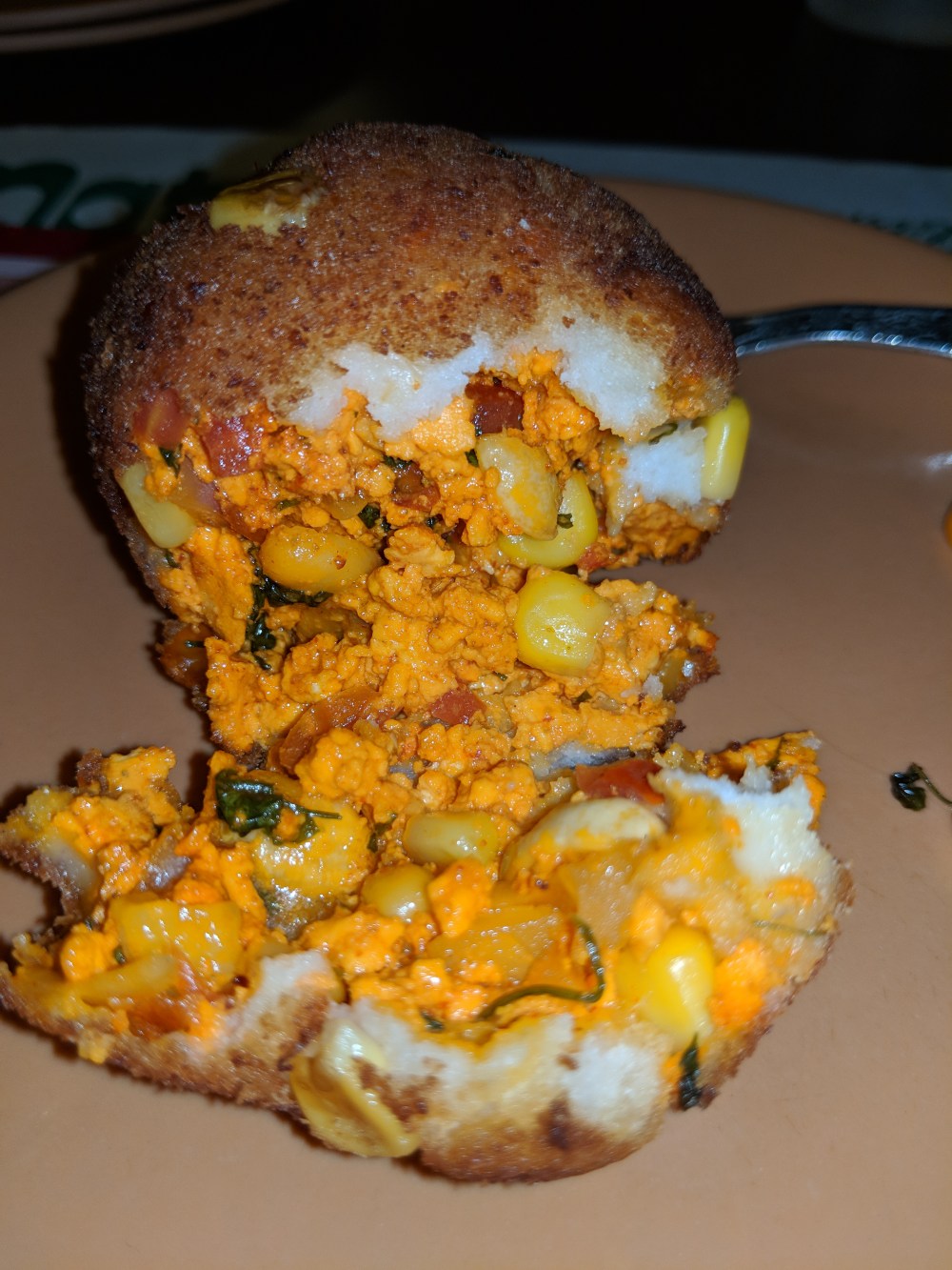 The best of the day. Filled with enough stuffings, one big piece is cut into 2 halves and served to you. This can very well be eaten all alone, but I had other ideas. Malai Kofta, Paneer Punjabi & Shahi Paneer (Spicy) surrounded my Kulcha and I was too confused wat to do with the remaining side-dishes in my plate. See how it looked here.