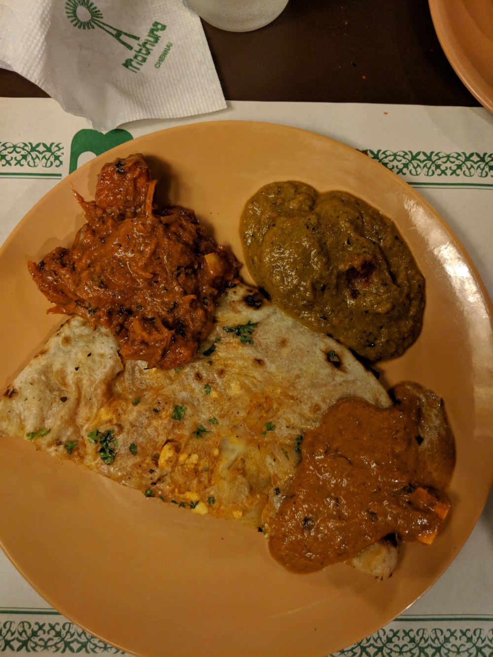 My brother has come home after his graduation and we have been planning for dinner at various places like BR Mathsya, Annalakshmi, Dhaba Corner, etc. and finally zeroed in on Mathura. The road from DMS directly hits at this towers on which the hotel is present. The other famous places around this hotel are Devi Cinemas, Cosmopolitan club, Casino theatre, Buhari hotel, Ritchie Street, etc. Located amidst one of the will-you-ever-sleep roads in Chennai, the ambience was great. The crowd was even more than the no. of supporters of Mumbai Indians and this naturally means the order can be delayed to an extent. Be prepared for it.