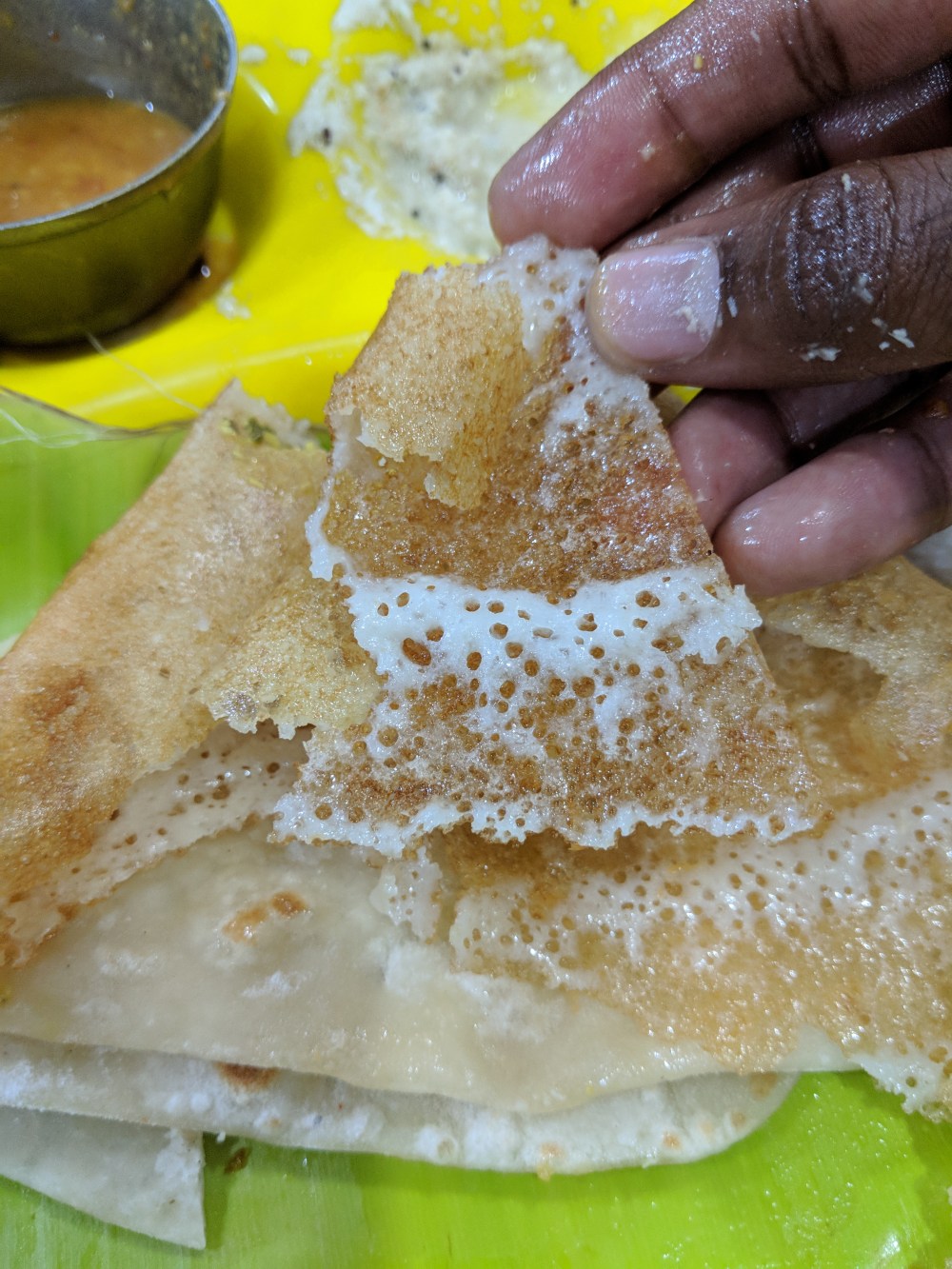 We didn’t have a mobile phone back then to save the memory but we used our brains to remember each and every part related to the cone dosai. I wore the Rahmaniac tee from fully filmy and the cone hid almost all the letters in the tee. Please don’t mind the pose and the reaction! This is all I could get.