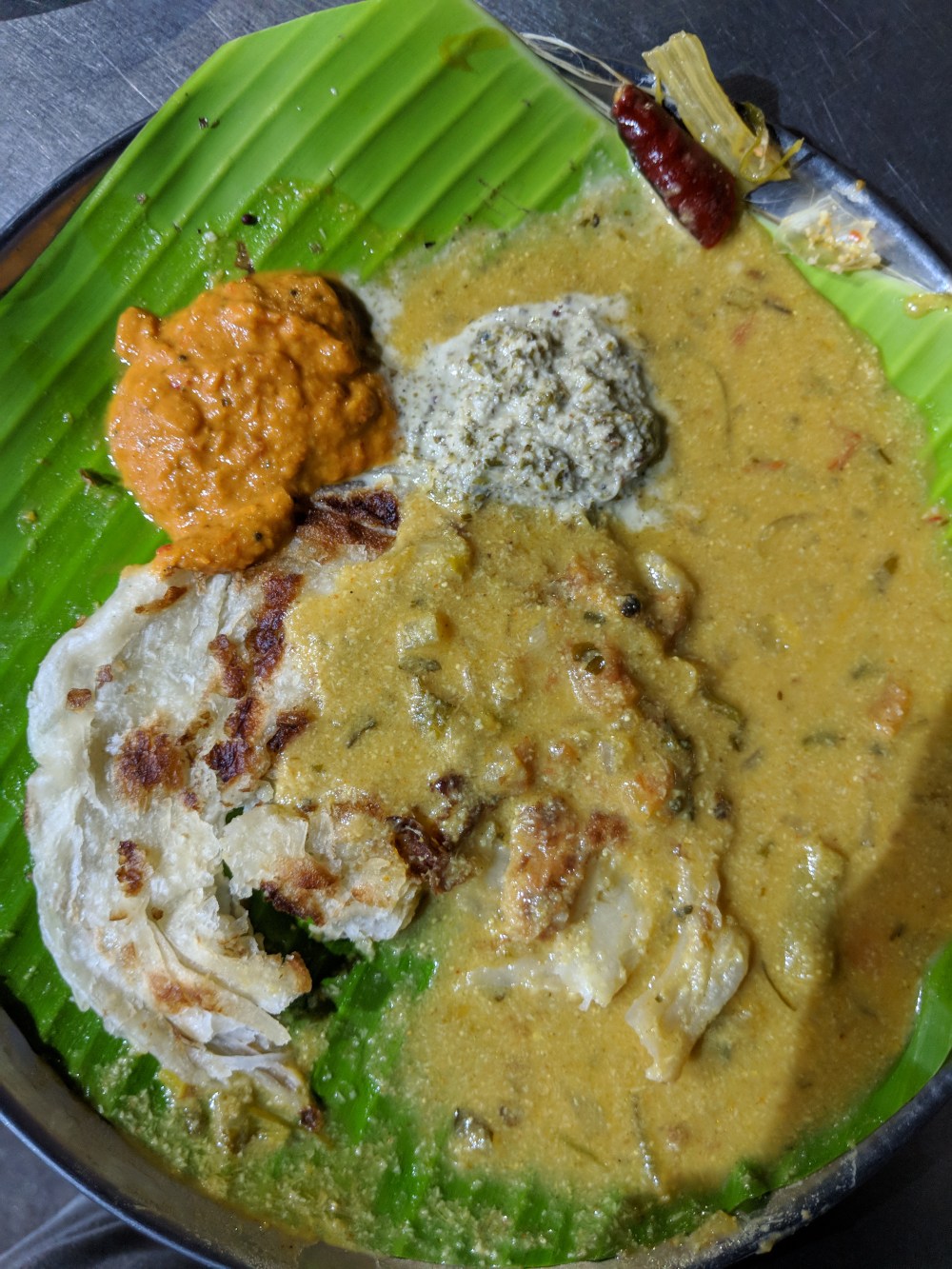 The other bucket houses the kurma that comes as a side for Chapati and Parotta.