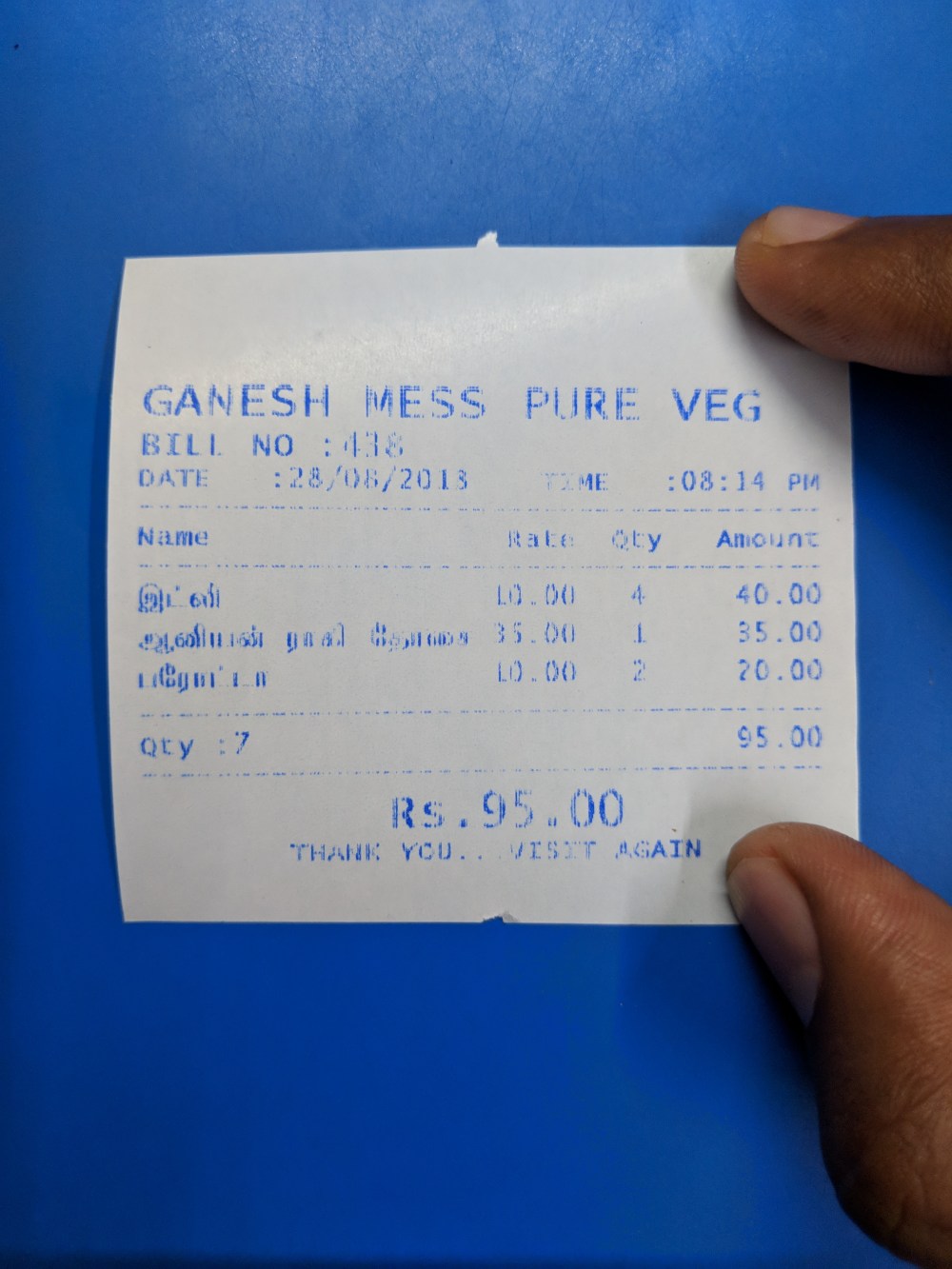 Don’t you think I m kidding. Just scroll above and visit the price list again. Yes it’s 10 per Parotta. We had one Parotta each and the size was bigger than expected. The Parotta went well with their chutneys too. Kurma was asusual but good.