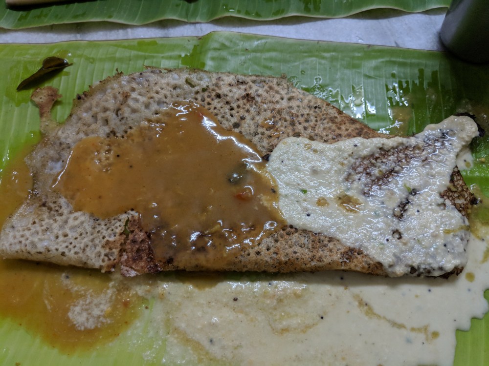 I’m having rava dosa for the 1st time and it was crispier. I used to hate it for the past 20 years and I didn’t have it even once at home. I wanted to try this as I already had adai previously, and I want the onion version. So went ahead with the plain version and this with the sambhar and chutney tasted great. By the time I finished this dosa, I was full and just had water though they asked for coffee.