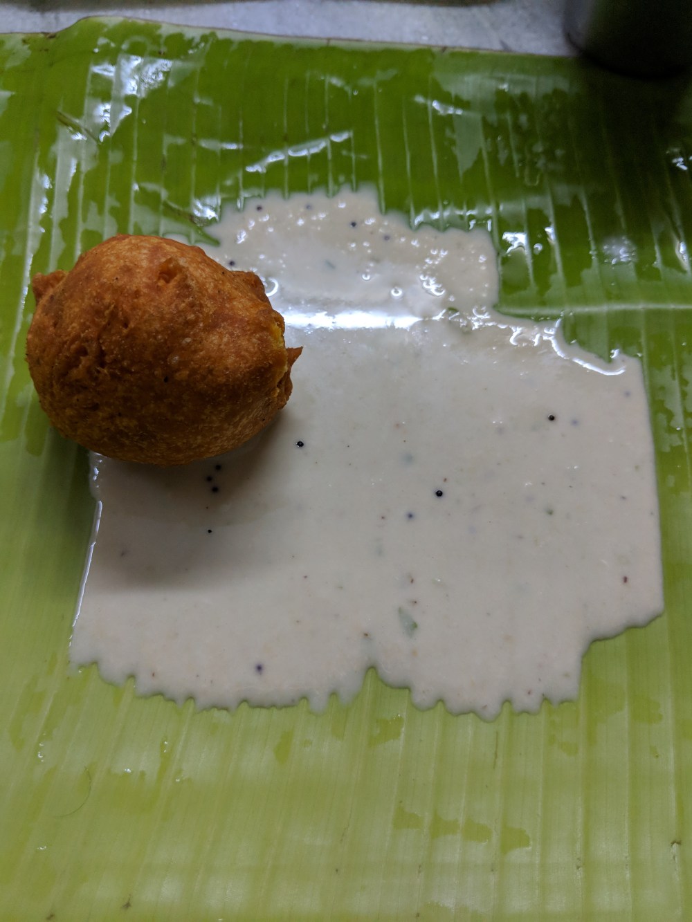I didn’t want to have the Mysore Bonda as it is maavu-ishy and so I went with the one that has Aloo masala inside. They serve 2 chutneys and sambhar on request.