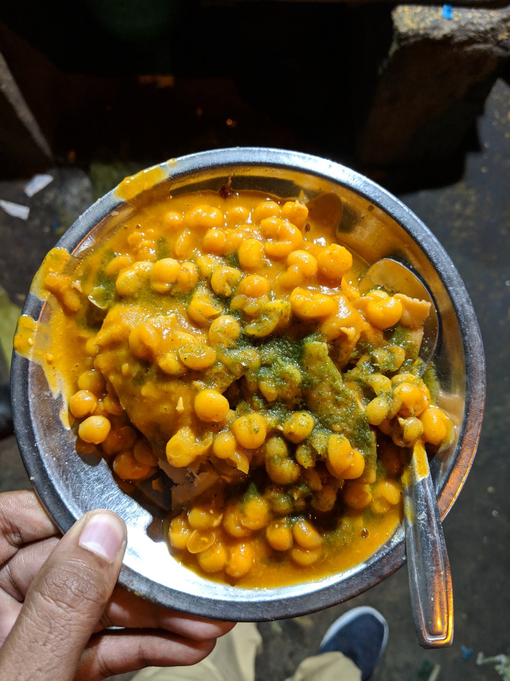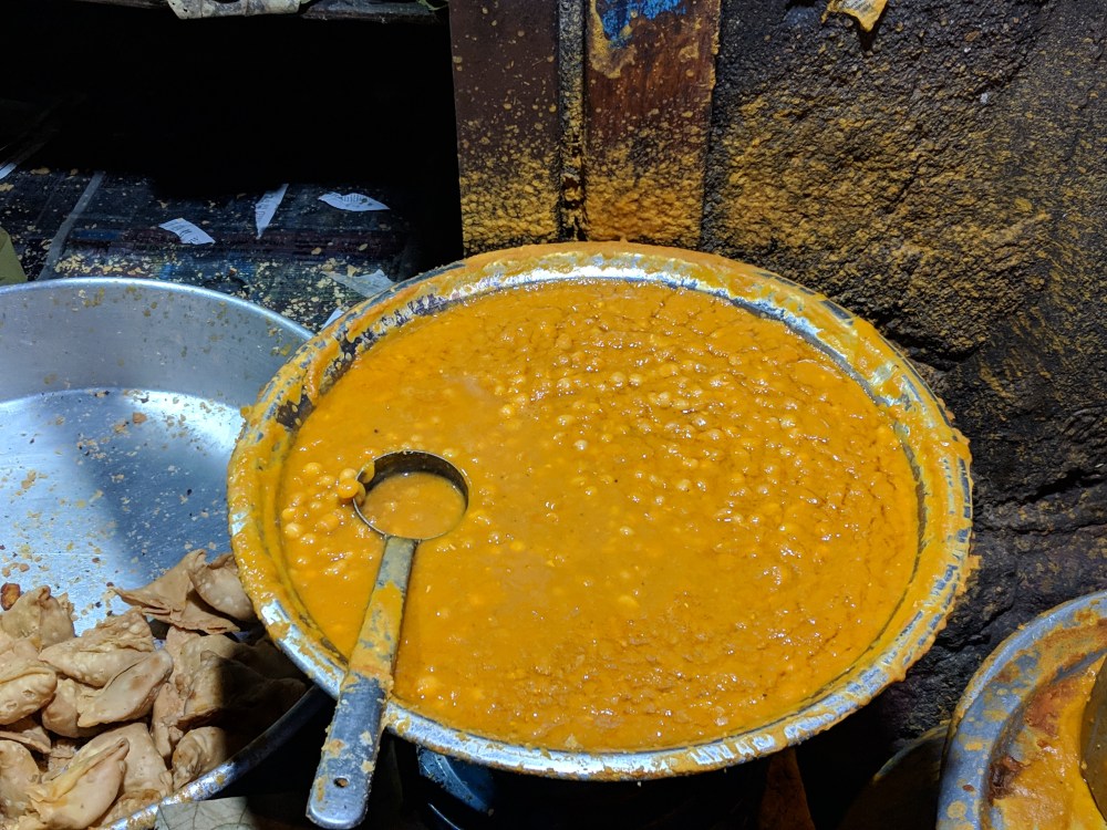 The samosas are waiting to be fried in gallons of oil placed in the kadaai. It’s mixed with white konda kadalai (I think, not sure – see picture below for the sundal) made into channa-ish sabji and served with mint chutney. This sundal-ised samosa is better and great than what you get for 20/- or 30/- in other so-called-high-end-chat shops. Those are literally thanda kadumanthrams in front of this samosa, I bet.