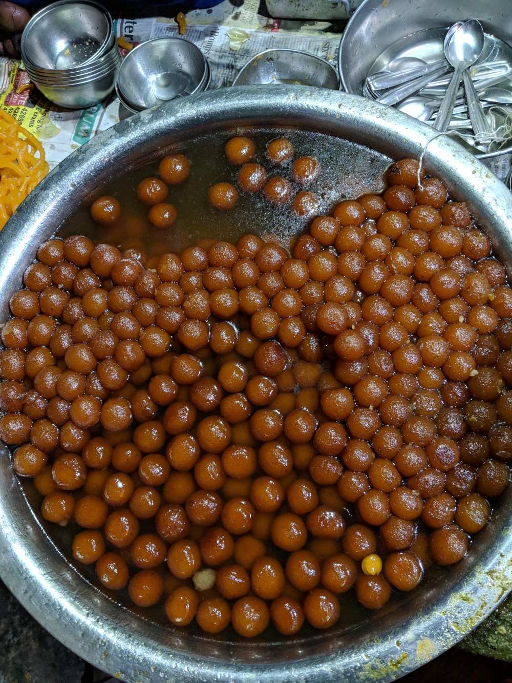 The jamuns, I think are about three fourths the size of 1 ping pong ball. Doesn’t it look like you want to take the paathiram and drink it apdiye without give it to anyone else, because sharing in food is a punishable offence (:P)! They give 5 pieces for 20/-, man this is an ultimate high in prices. Even Flipkart and Amazon don’t give deals throughout the year but these guys are more than them! They are literally Jamun gods I would say.