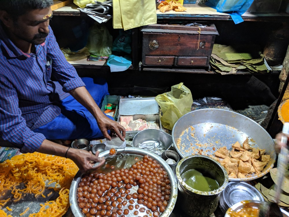 This particular small Bullock cart outlet is famous among all the people who go to Ritchie Street, Wallers road right next to India Silk House Private Limited. Anybody who comes here will definitely have samosas, Gulab Jamuns and Jilebi’s. I would call it the commoner’s kadai.