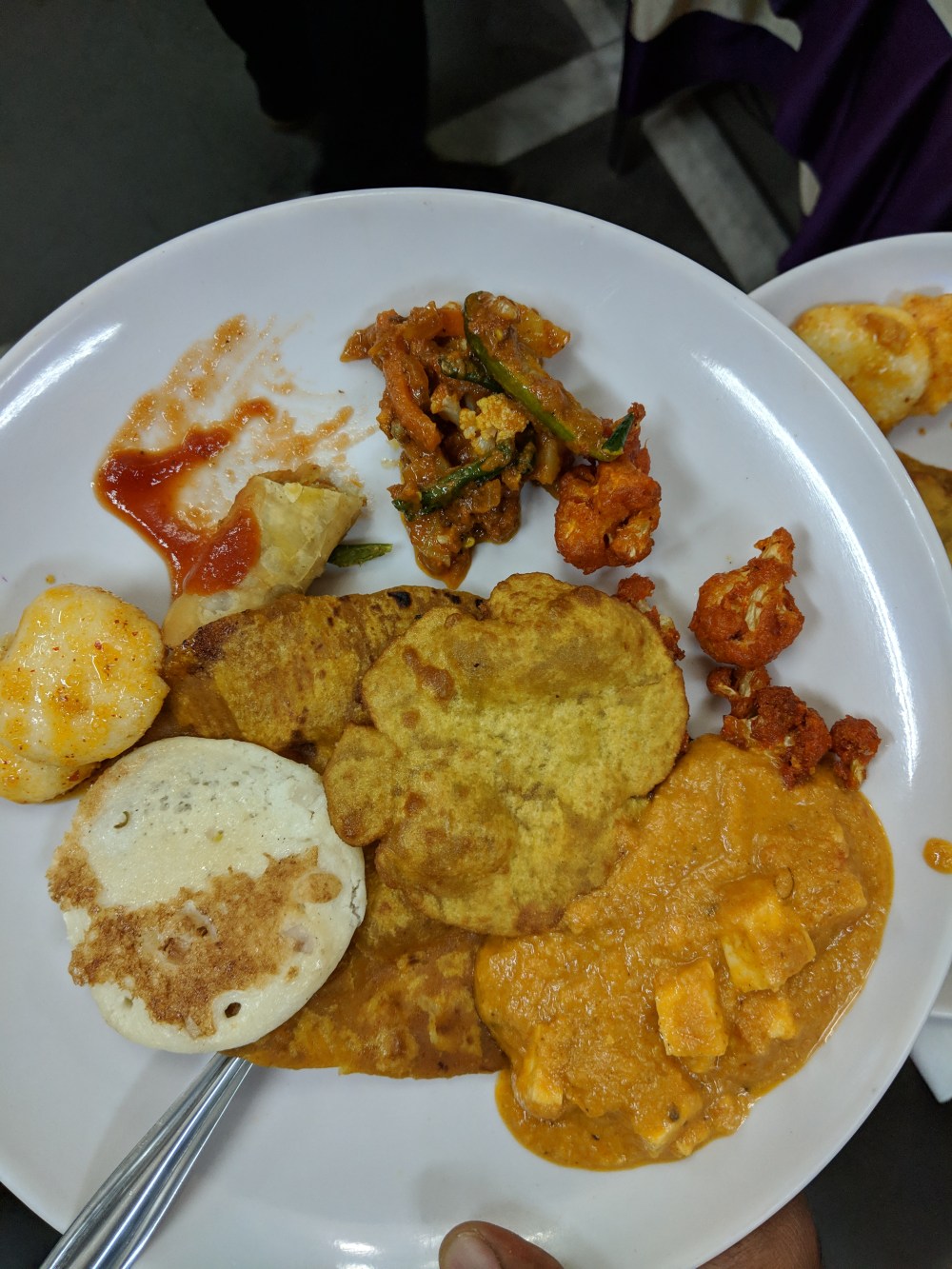 Uthappam or Oothappam or whatever you would say! With the chutnies and sambhar this too was added to my list of special items. Just see how crowded my plate was after all these additions.