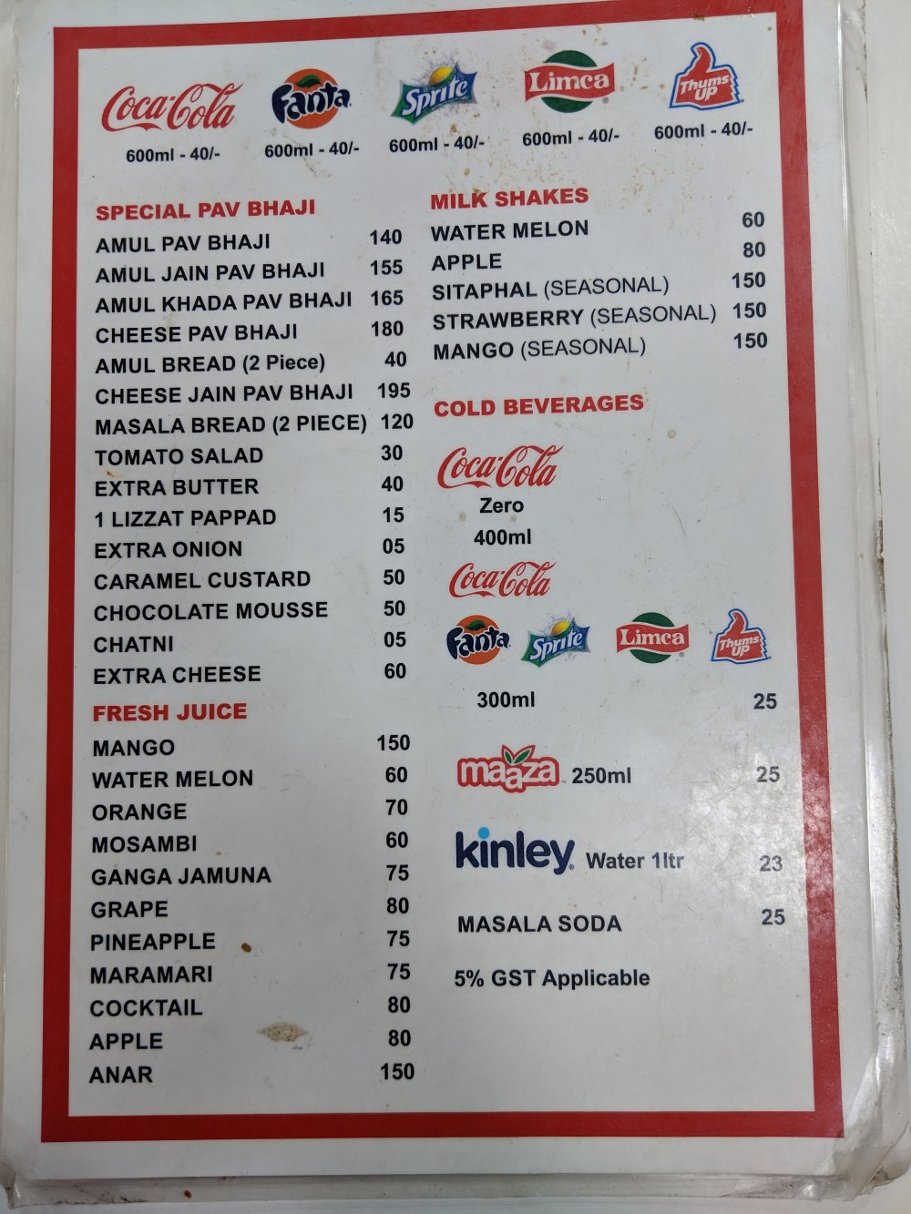 This is their menu. We ordered the Amul Pav Bhaji. I had the Cheese Pav Bhaji earlier and it looked amazing. See it here Cheese Pav Bhaji