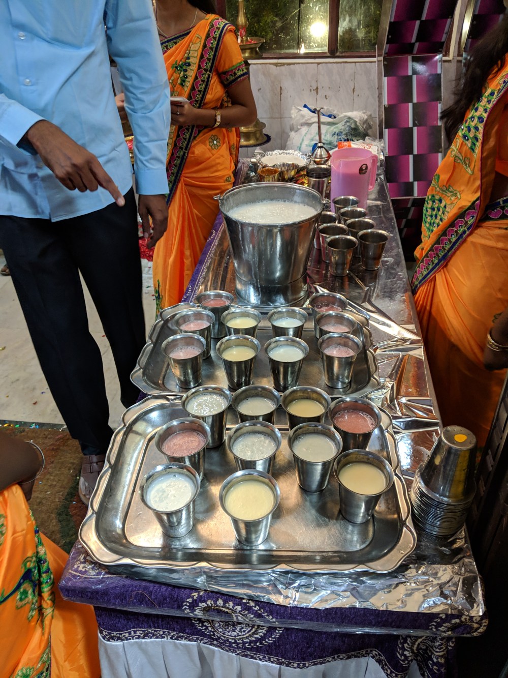 The guests were greeted with watermelon, guava and another juice (I don’t remember it’s name). It was good and this gave you the initial relief from the heat after travelling! வினாயகர் was brilliantly decorated and placed near the juice counter so that people shall have the juice and even pray Appane Vinayagaa and go inside the hall.
