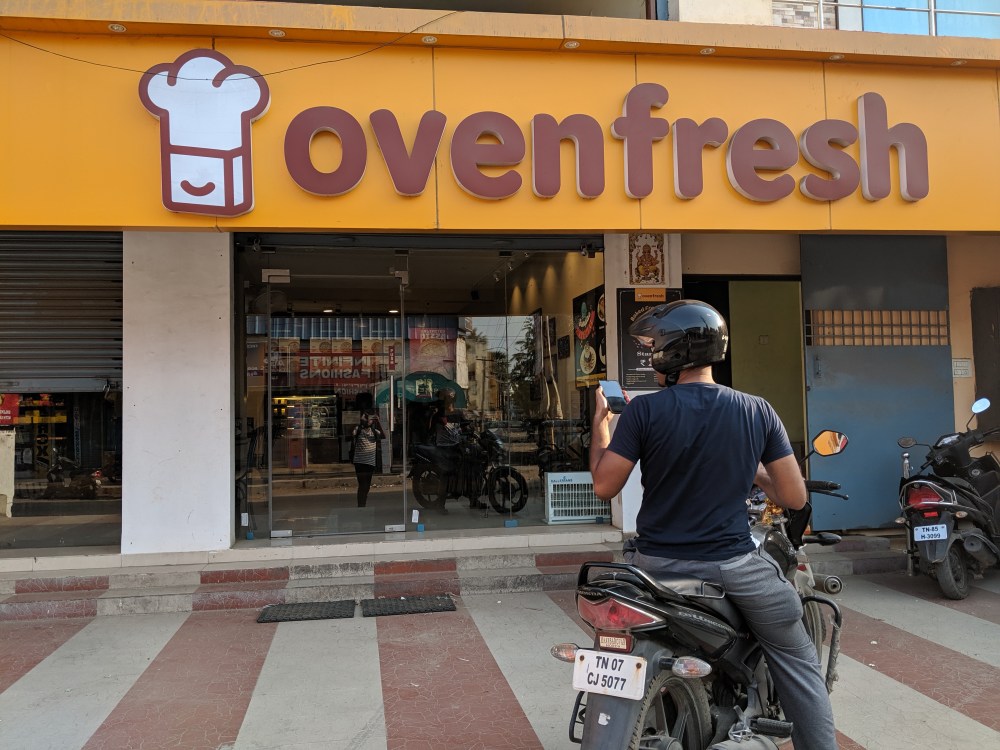 I realized I forgot to have my lunch but Bala was full. Though I had 2 glasses of the இளநீர் சர்பத் priced at INR 35 each, I still wanted to have lunch. I saw the Ovenfresh at some distance and noticed their “Unlimited Pizzas with Garlic Bread” offer in the flex board.