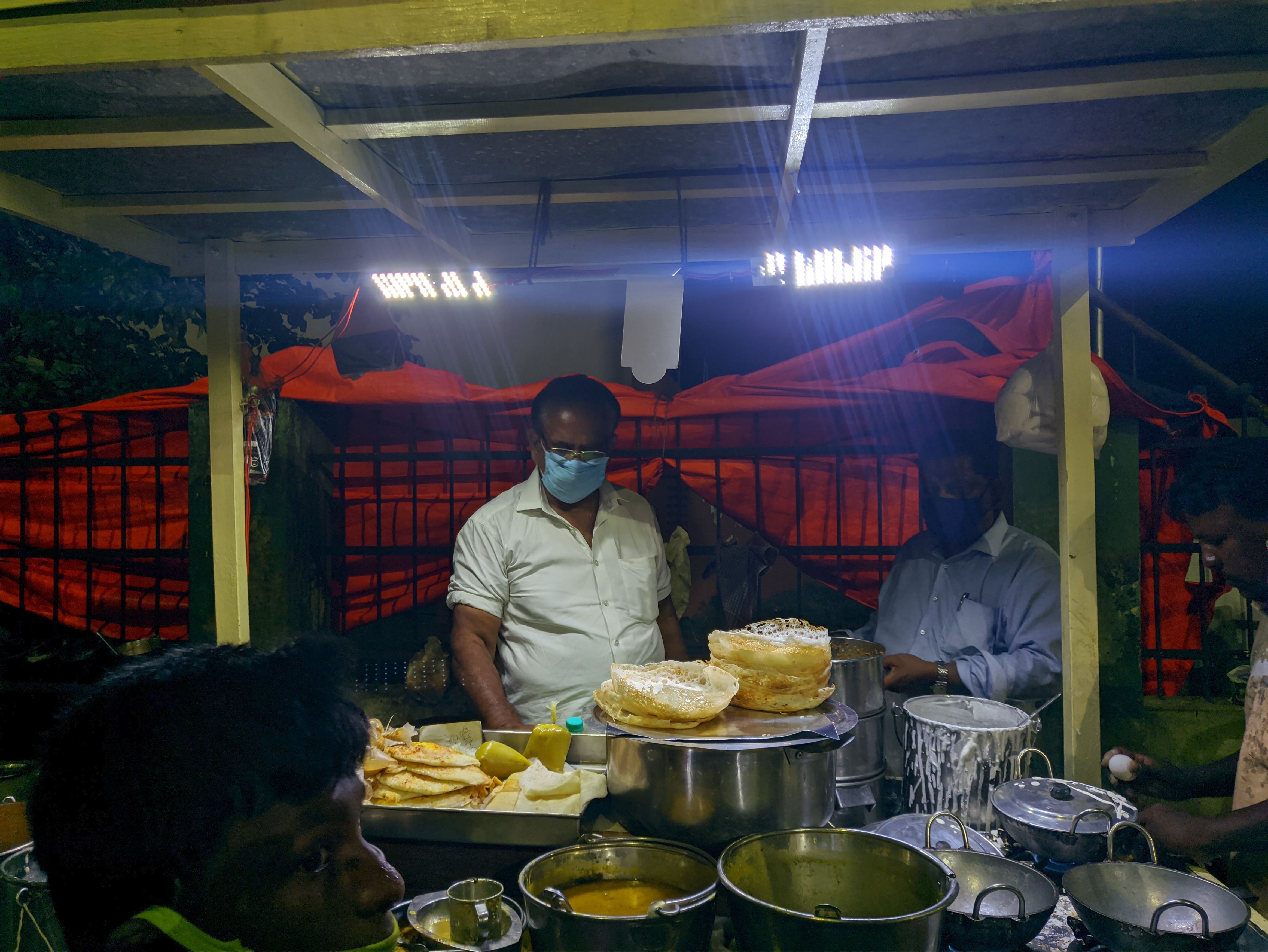 The shop serves about ten different side dishes to go with. They have the usual chutney, sambar, and vada curry. If you decide to try something apart from the usual, they have coconut milk, kaara kuzhambu, meen kuzambhu, chicken kuzhambu, mutton kuzhambu and hot aattu kaal paaya (Lamb Trotters Stew).