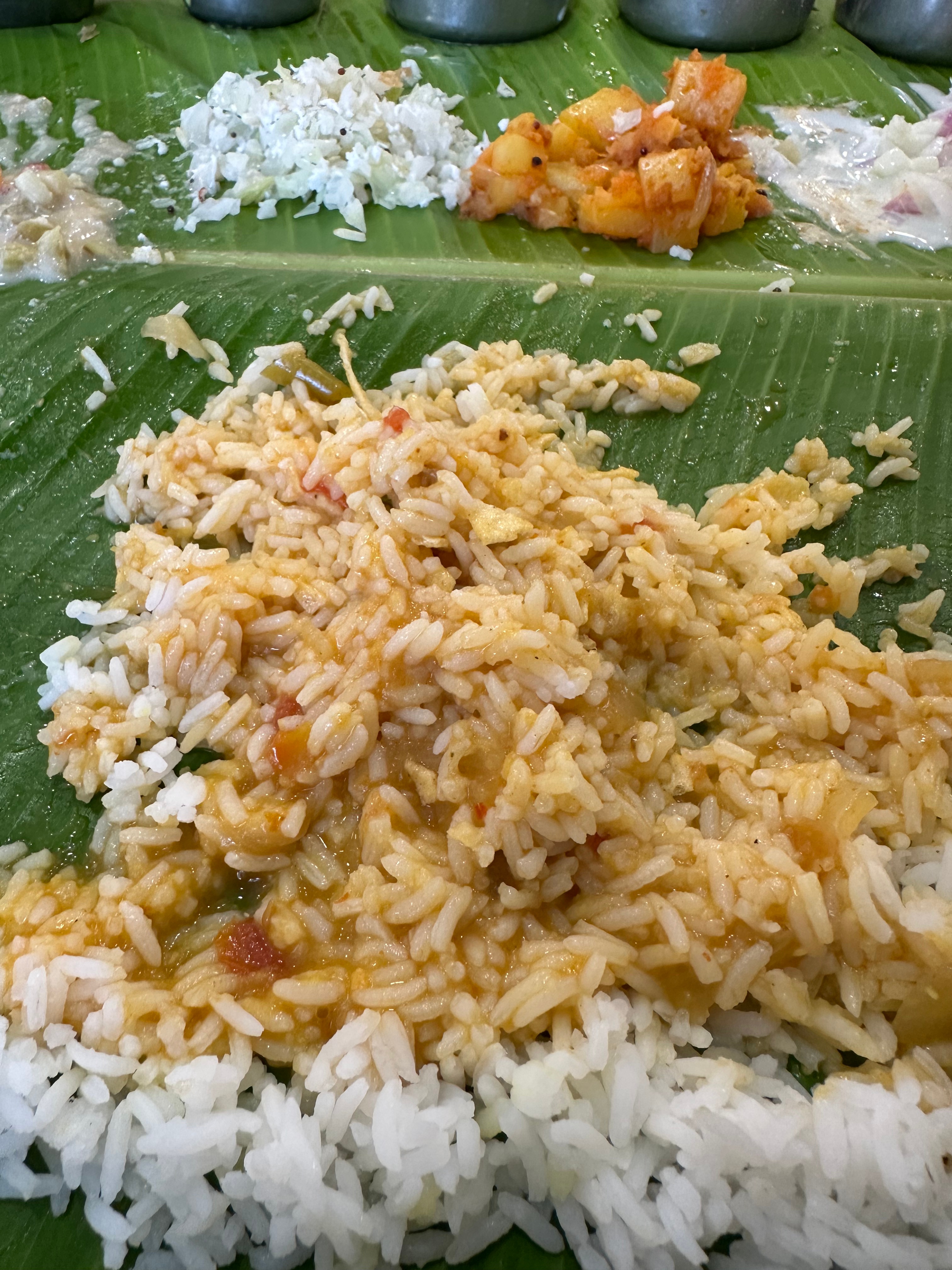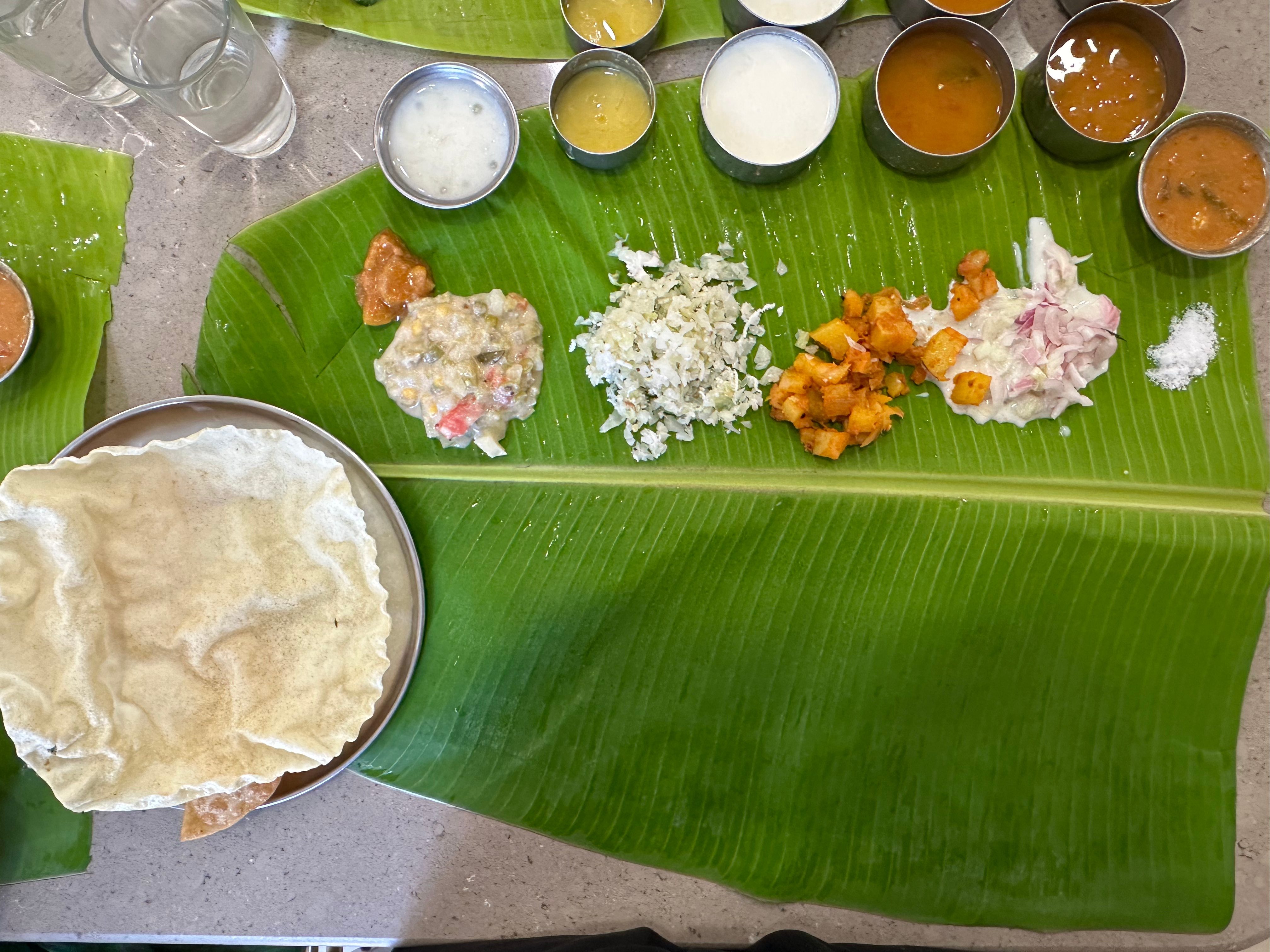 - When the waiter sees your plate / leaf is empty, they don’t instantly come with the next item you need. That actually makes a big difference IMO.